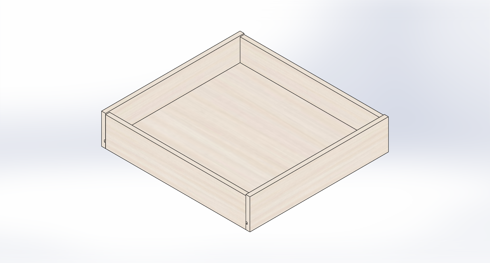 Custom stained birch ply drawer-box, grooved and dowelled to fit roller runners